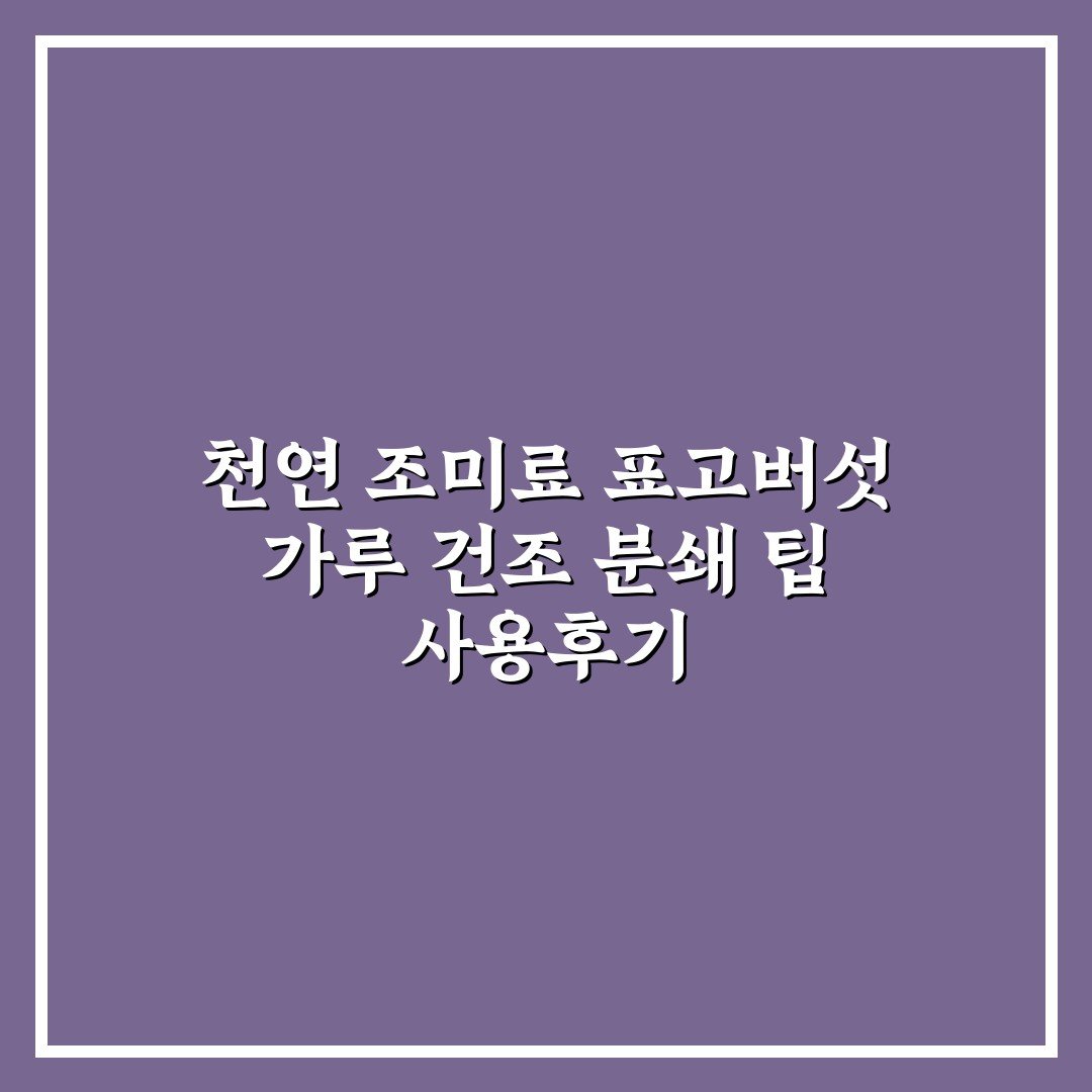천연 조미료 표고버섯 가루 건조 분쇄 팁 사용후기 2026년 04월 12일 작성자: 인포 천연 조미료 표고버섯 가루 건조 분쇄 팁을 소개합니다. 집에서도 간편하게 만드는 방법과 활용 꿀팁을 확인해보세요.