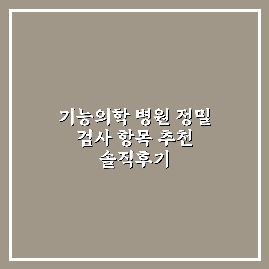 기능의학 병원 정밀 검사 항목 추천과 실제 후기를 바탕으로 신뢰할 수 있는 검사 선택 팁을 제공합니다.
