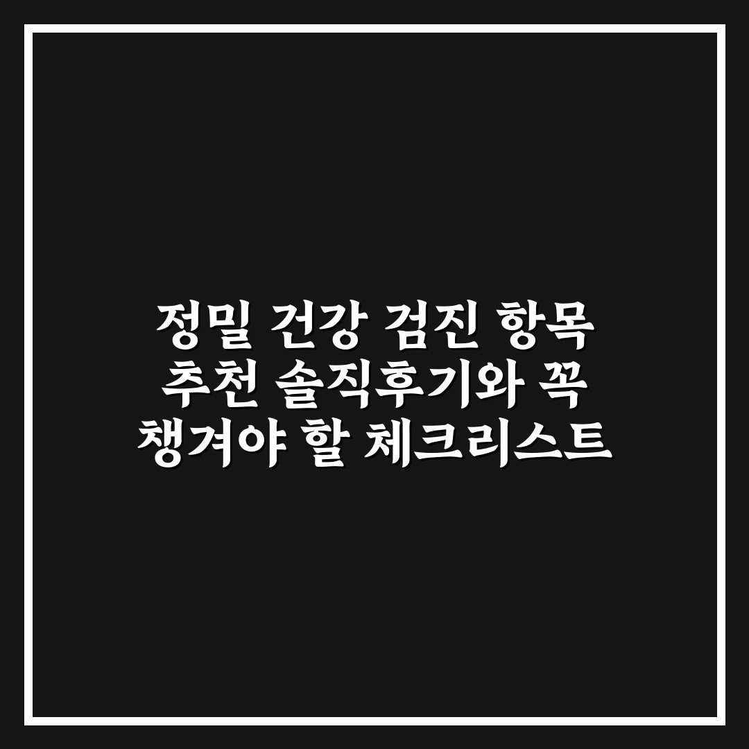 정밀 건강 검진 항목 추천과 솔직 후기를 통해 꼭 챙겨야 할 검사 리스트를 확인하세요. 건강 관리에 도움됩니다.