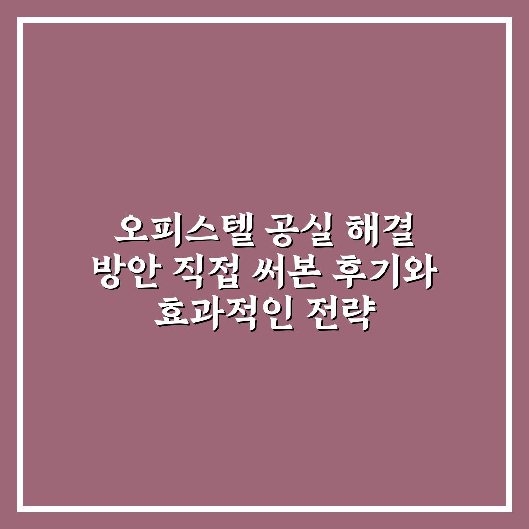 오피스텔 공실 해결 방안에 대해 직접 시도해본 후기와 함께 효과적인 전략을 소개합니다. 실질적 도움을 원한다면 참고하세요.