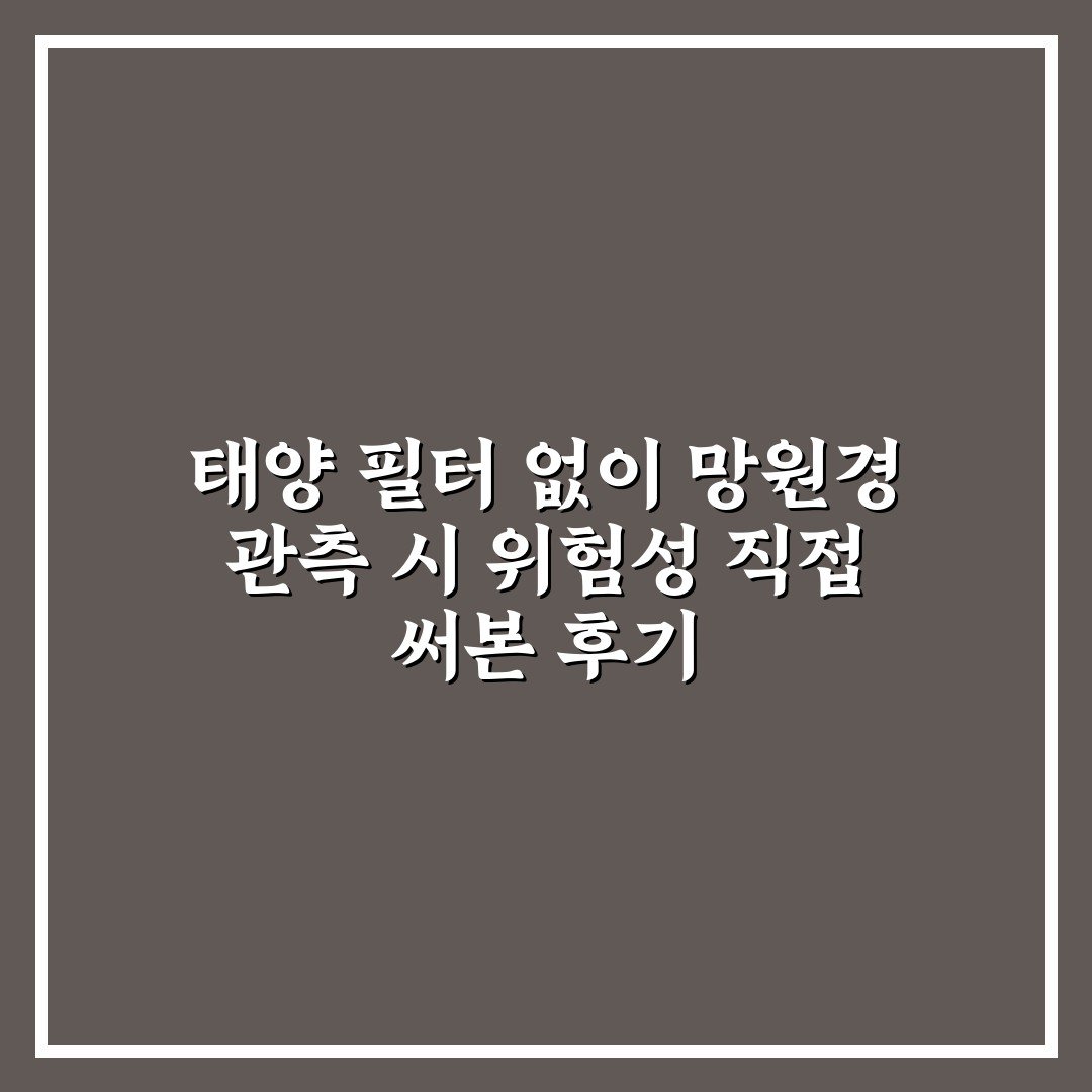 태양 필터 없이 망원경 관측 시 위험성 직접 써본 후기 2026년 03월 27일 작성자: 인포 태양 필터 없이 망원경 관측 시 위험성을 직접 경험한 후기로, 안전한 관측 방법의 중요성을 알립니다.