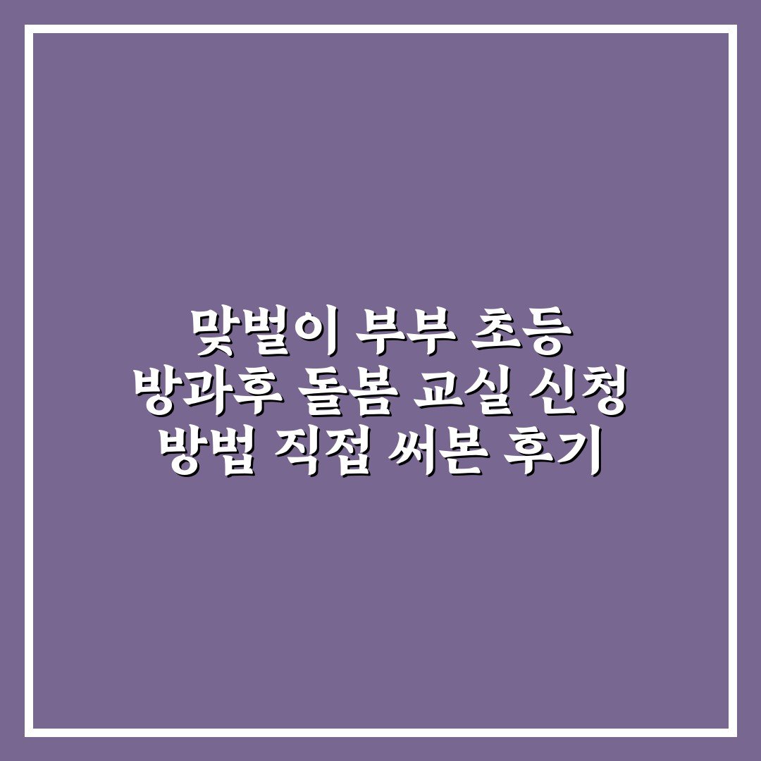 맞벌이 부부 초등 방과후 돌봄 교실 신청 방법 직접 써본 후기 2026년 04월 14일 작성자: 인포 맞벌이 부부 초등 방과후 돌봄 교실 신청 방법을 쉽고 자세하게 소개합니다. 실제 경험을 바탕으로 한 꿀팁도 확인해보세요.