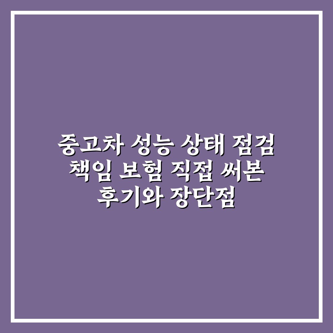 중고차 성능 상태 점검 책임 보험 직접 써본 후기와 장단점 2026년 04월 01일 작성자: 인포 중고차 성능 상태 점검 책임 보험 직접 경험담과 함께 주요 장단점을 솔직하게 소개합니다. 구매 전 필독!