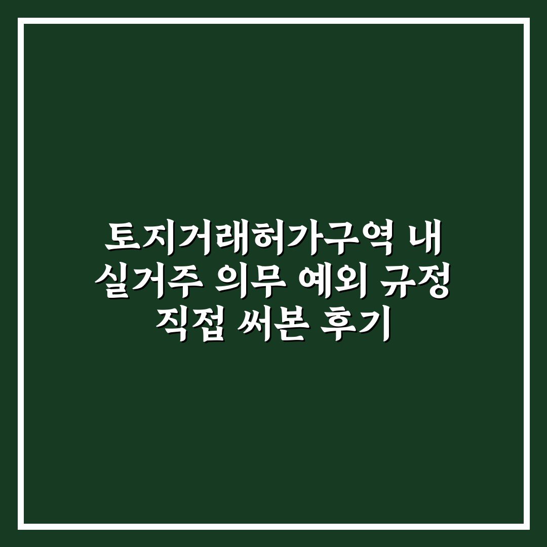 토지거래허가구역 내 실거주 의무 예외 규정에 대한 실제 경험과 적용 사례를 쉽게 이해할 수 있도록 정리했습니다.