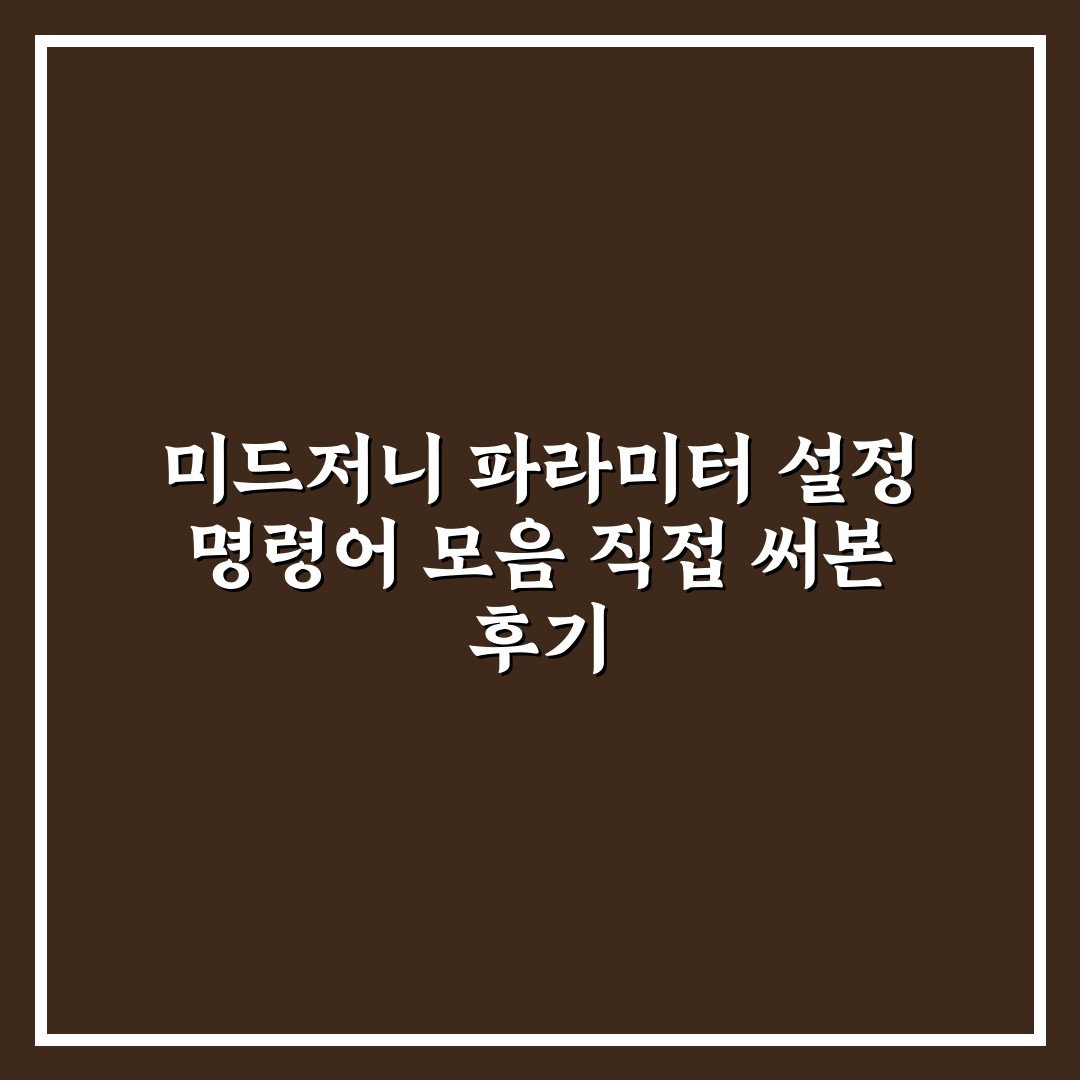 미드저니 파라미터 설정 명령어 모음 직접 써본 후기 2026년 03월 30일 작성자: 인포 미드저니 파라미터 설정 명령어 모음을 직접 사용해본 경험과 효과적인 활용 팁을 자세히 소개합니다.