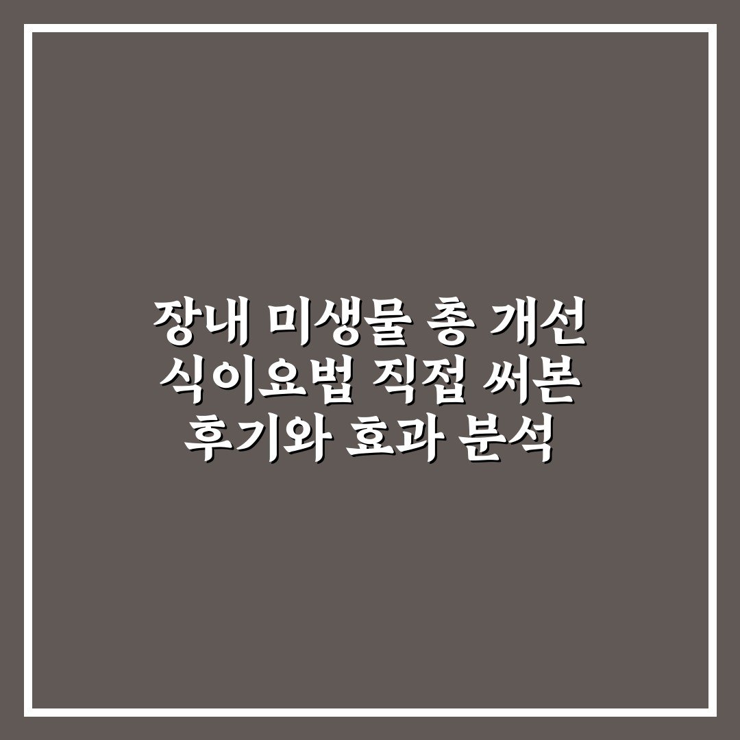장내 미생물 총 개선 식이요법 직접 써본 후기와 효과 분석 2026년 04월 02일 작성자: 인포 장내 미생물 총 개선 식이요법을 직접 체험한 후기를 바탕으로 효과와 변화를 자세히 분석했습니다.