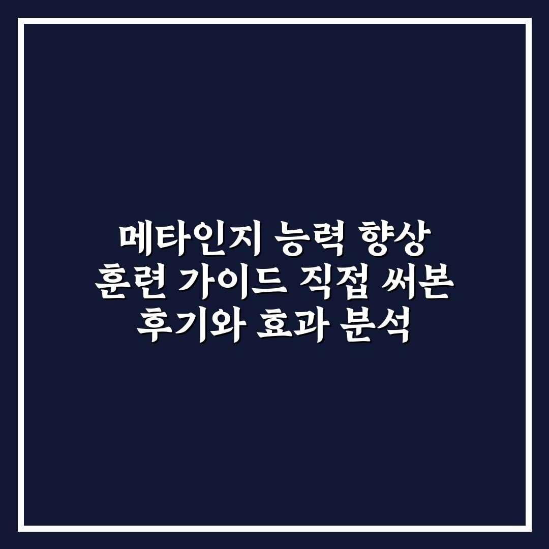 메타인지 능력 향상 훈련 가이드 직접 써본 후기와 효과 분석 2026년 03월 22일 작성자: 인포 메타인지 능력 향상 훈련 가이드를 직접 체험한 후기를 바탕으로 효과와 실제 변화를 자세히 분석했습니다.
