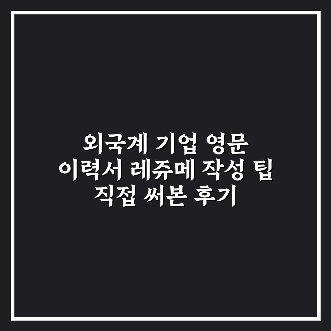 외국계 기업 영문 이력서 레쥬메 작성 팁 직접 써본 후기 2026년 04월 11일 작성자: 인포 외국계 기업 영문 이력서 레쥬메 작성 팁과 실제 경험을 바탕으로, 효과적인 자기소개서 작성 방법을 공유합니다.