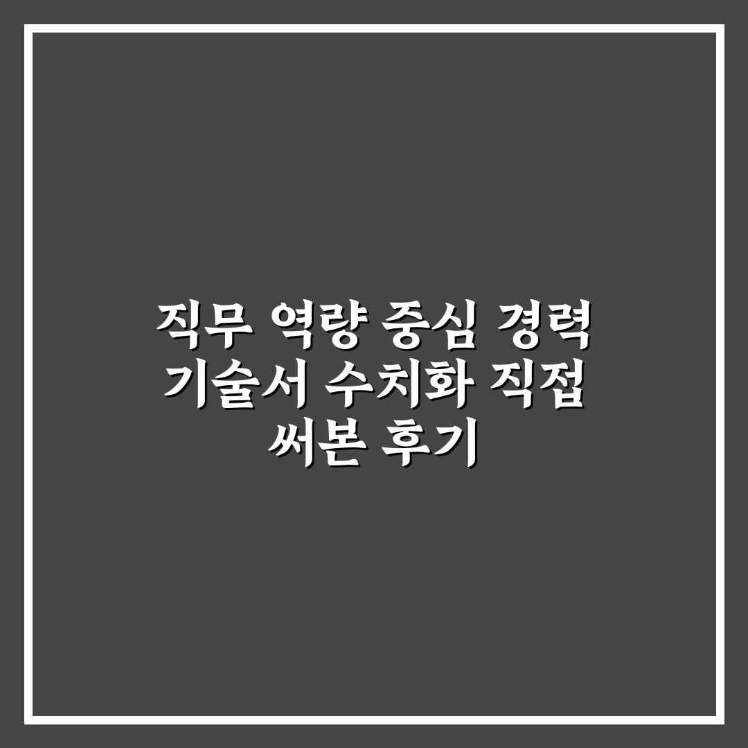 직무 역량 중심 경력 기술서 수치화 직접 써본 후기 2026년 04월 02일 작성자: 인포 직무 역량 중심 경력 기술서 수치화 방법을 직접 경험하며 느낀 효과와 작성 팁을 솔직하게 공유합니다.