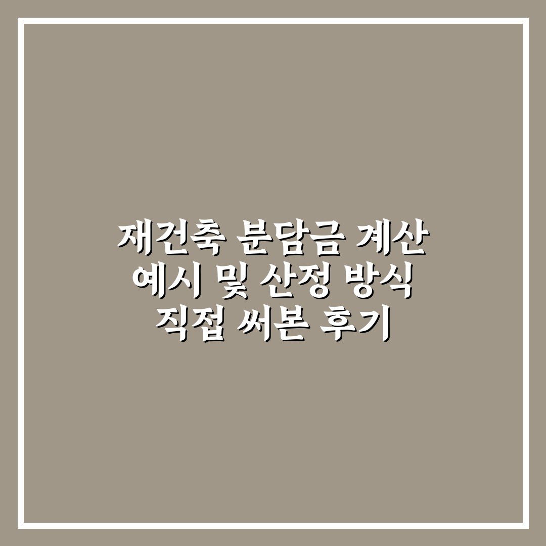 재건축 분담금 계산 예시 및 산정 방식 직접 써본 후기 2026년 04월 10일 작성자: 인포 재건축 분담금 계산 예시 및 산정 방식을 쉽게 이해할 수 있도록 실제 사례와 함께 자세히 설명합니다.