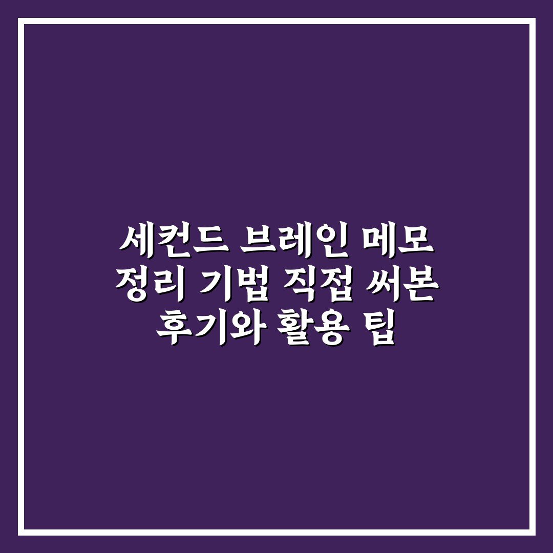 세컨드 브레인 메모 정리 기법 직접 써본 후기와 활용 팁 2026년 04월 10일 작성자: 인포 세컨드 브레인 메모 정리 기법을 직접 사용해본 생생한 후기와 실생활에 바로 적용 가능한 활용 팁을 소개합니다.