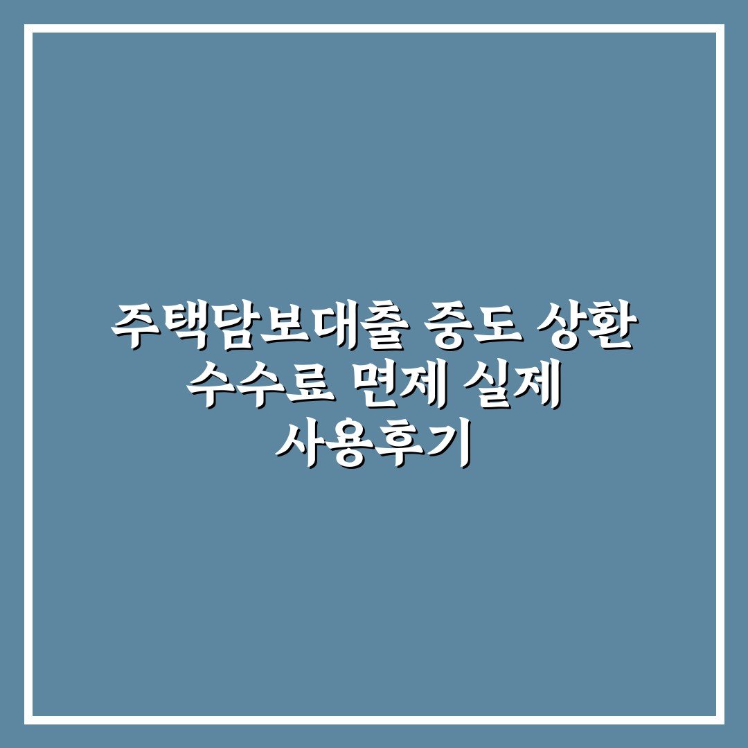 주택담보대출 중도 상환 수수료 면제 실제 사용후기 2026년 03월 30일 작성자: 인포 주택담보대출 중도 상환 수수료 면제 혜택을 실제로 이용한 후기를 공유합니다. 절차와 유의사항을 확인해 보세요.