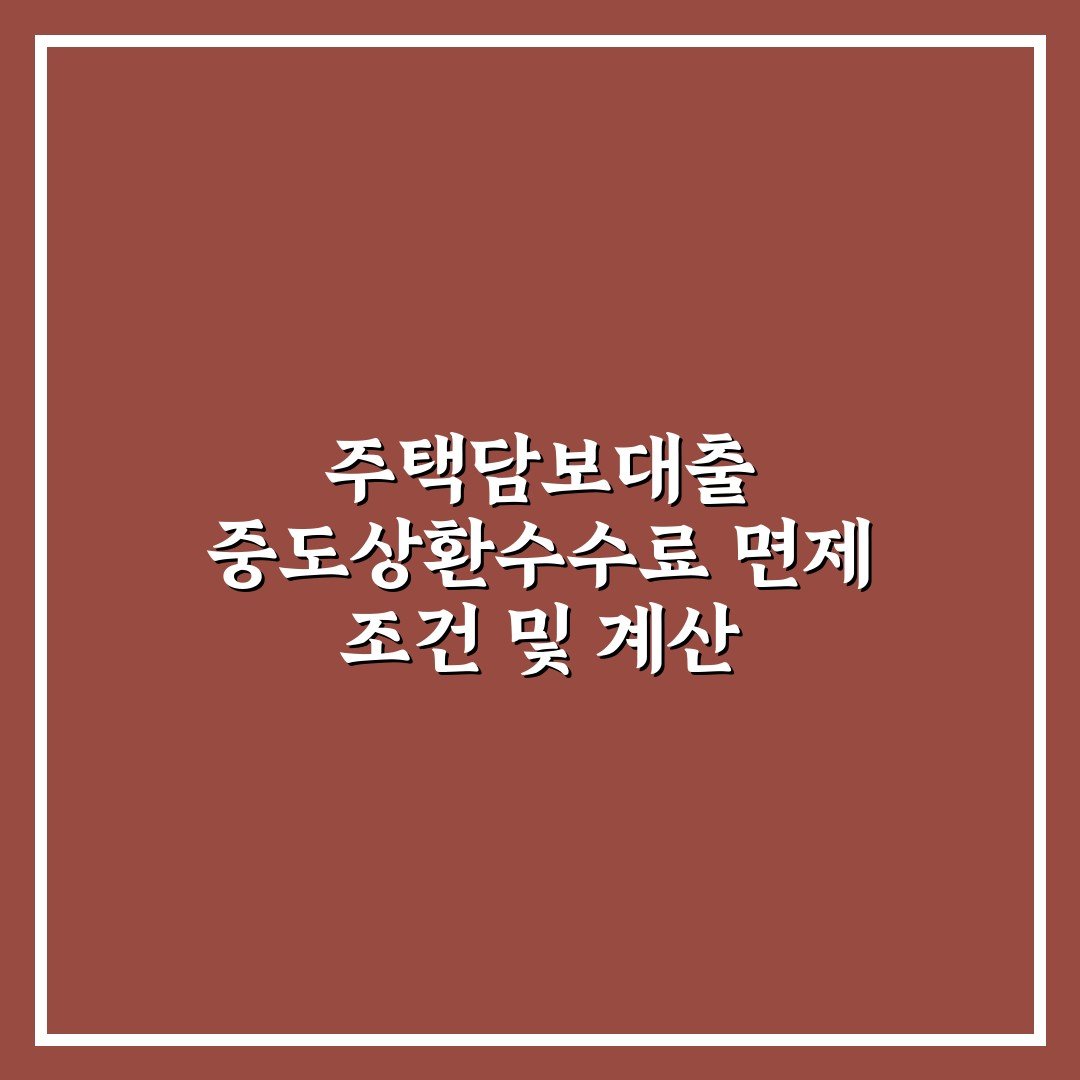 주택담보대출 중도상환수수료 면제 조건 및 계산 핵심가이드 5포인트 2026년 03월 21일 작성자: 인포 주택담보대출 중도상환수수료 면제 조건 및 계산 방법을 이해하고 절약할 수 있는 핵심 정보를 간결하게 제공합니다.