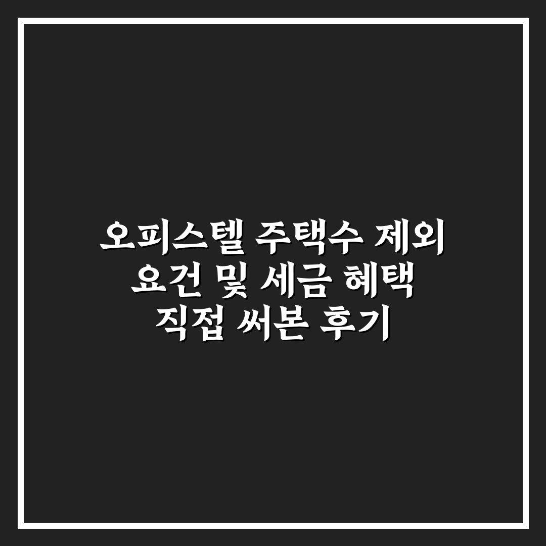 오피스텔 주택수 제외 요건 및 세금 혜택 직접 써본 후기 2026년 04월 12일 작성자: 인포 오피스텔 주택수 제외 요건 및 세금 혜택에 대해 직접 경험한 내용을 쉽게 정리했습니다. 실질적인 도움을 드립니다.