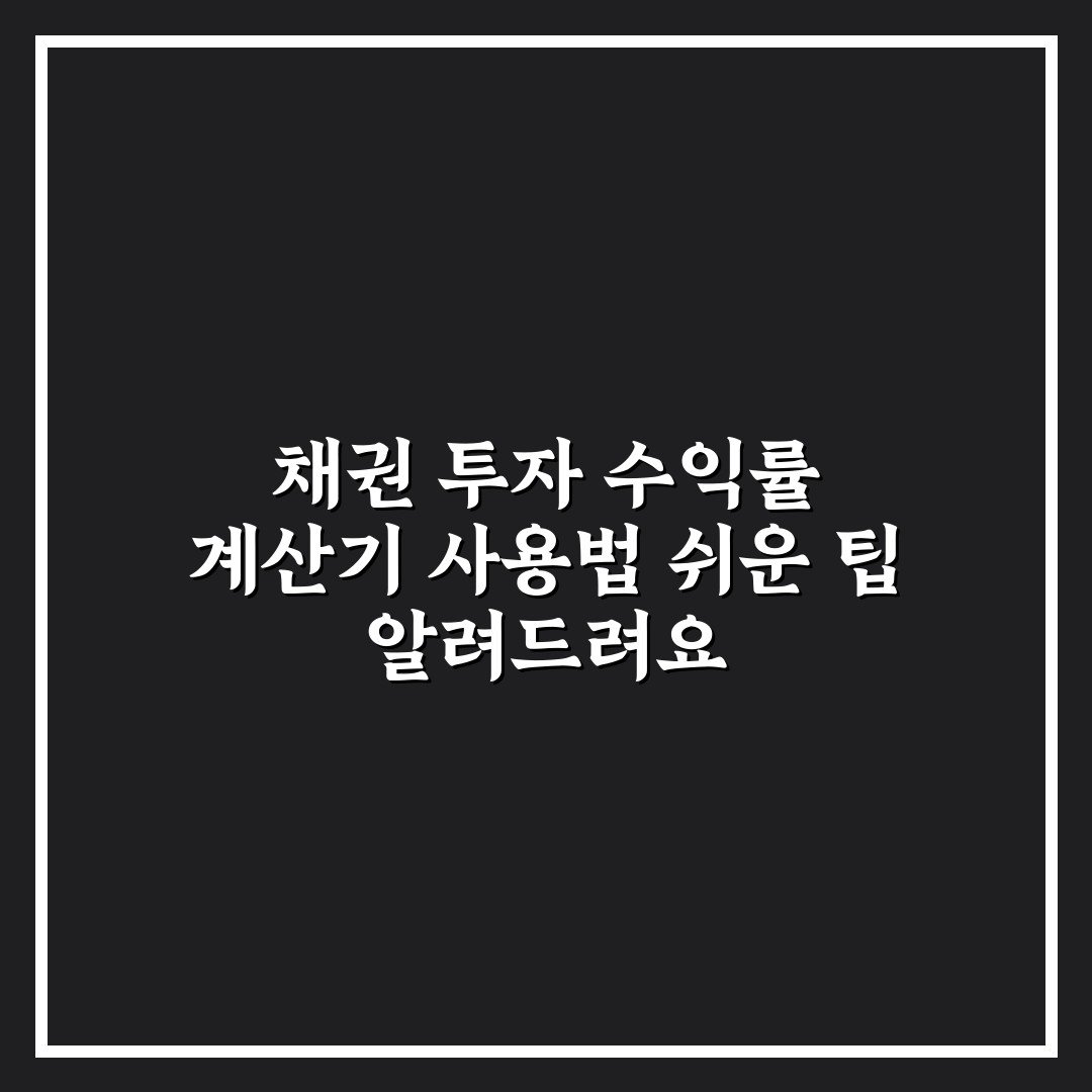 채권 투자 수익률 계산기 사용법 쉬운 팁 알려드려요