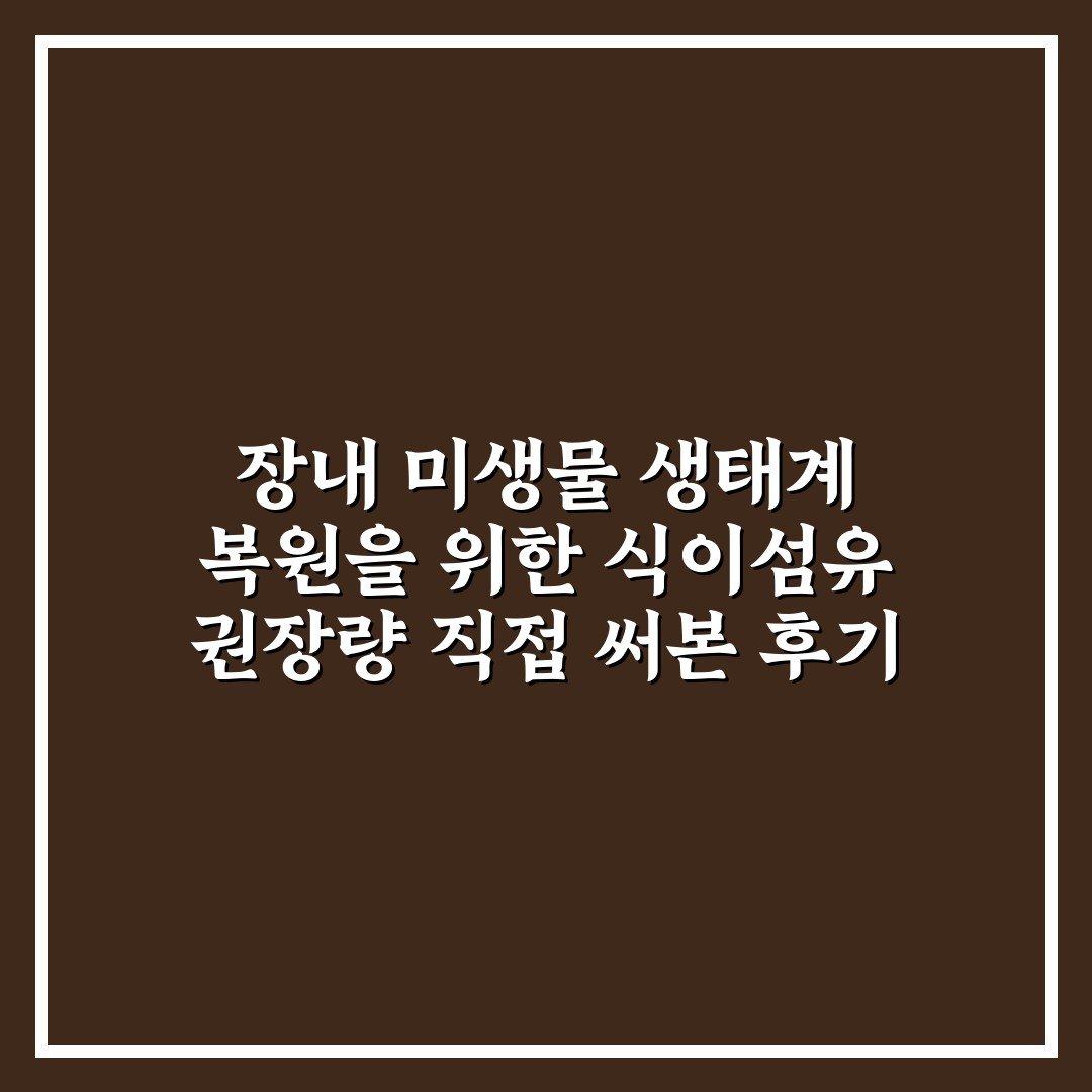 장내 미생물 생태계 복원을 위한 식이섬유 권장량 직접 써본 후기 2026년 03월 23일 작성자: 인포 장내 미생물 생태계 복원을 위한 식이섬유 권장량을 직접 실천한 경험과 효과를 솔직하게 소개합니다.