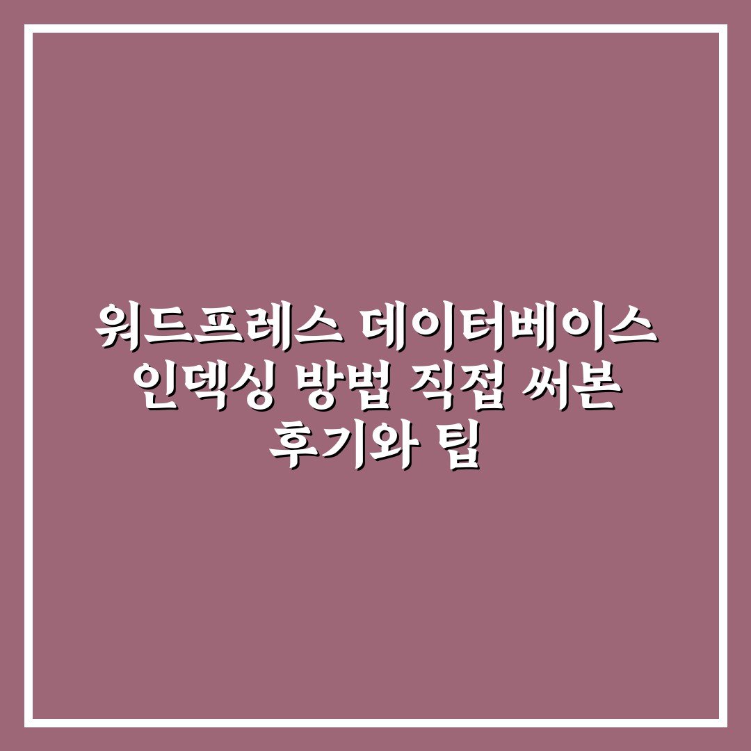 워드프레스 데이터베이스 인덱싱 방법 직접 써본 후기와 팁 2026년 04월 01일 작성자: 인포 워드프레스 데이터베이스 인덱싱 방법을 직접 적용해본 경험과 실용적인 팁을 공유합니다. 효율 향상에 도움됩니다.