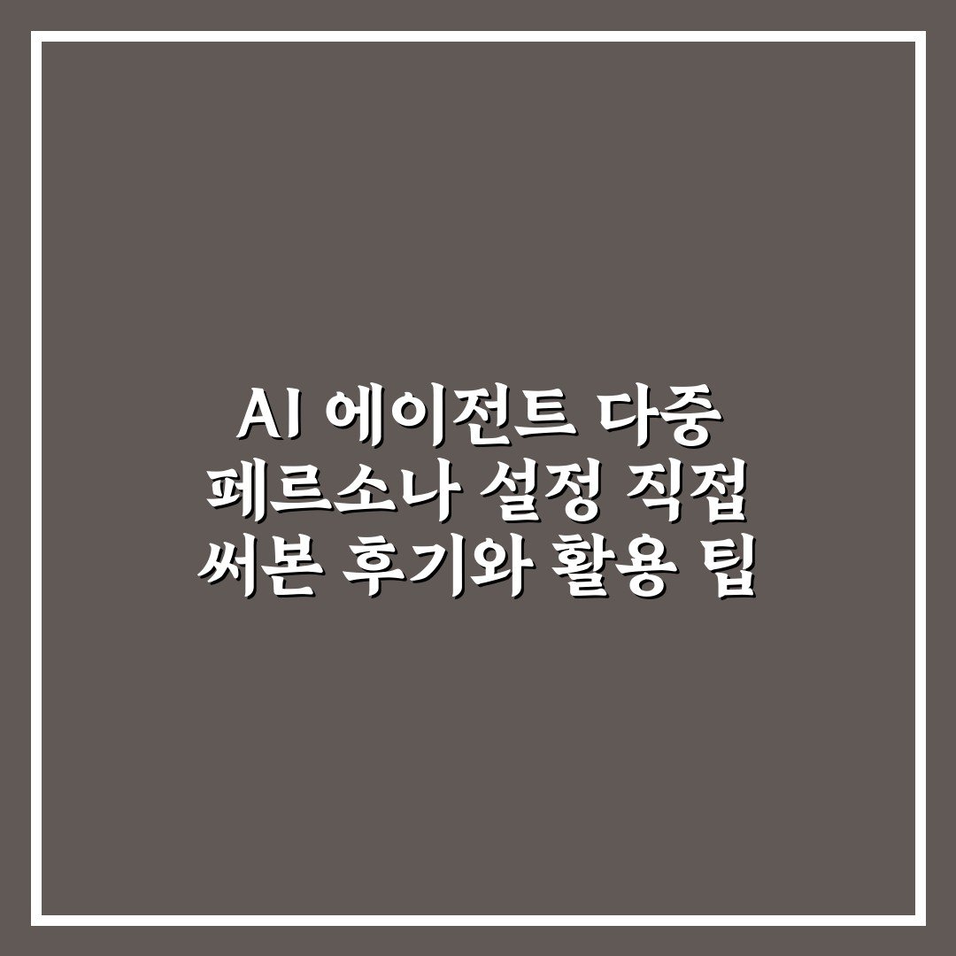 AI 에이전트 다중 페르소나 설정 직접 써본 후기와 활용 팁 2026년 03월 24일 작성자: 인포 AI 에이전트 다중 페르소나 설정을 직접 경험하며 얻은 실용적인 후기와 효과적인 활용 팁을 소개합니다.