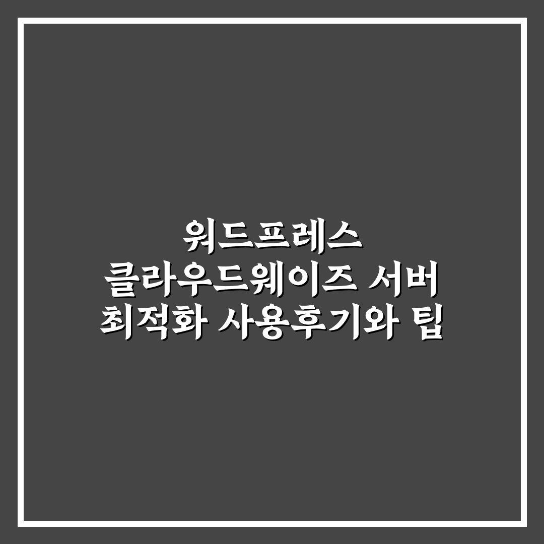 워드프레스 클라우드웨이즈 서버 최적화 사용후기와 팁 2026년 03월 30일 작성자: 인포 워드프레스 클라우드웨이즈 서버 최적화 방법과 실제 사용 후기를 공유합니다. 성능 개선 팁도 함께 확인해보세요.