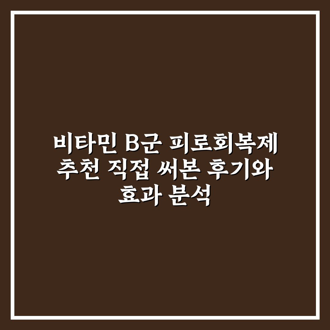 비타민 B군 피로회복제 추천 직접 써본 후기와 효과 분석 2026년 03월 30일 작성자: 인포 비타민 B군 피로회복제 추천! 직접 써본 후 효과와 성분을 꼼꼼히 분석해 신뢰할 수 있는 선택을 도와드립니다.