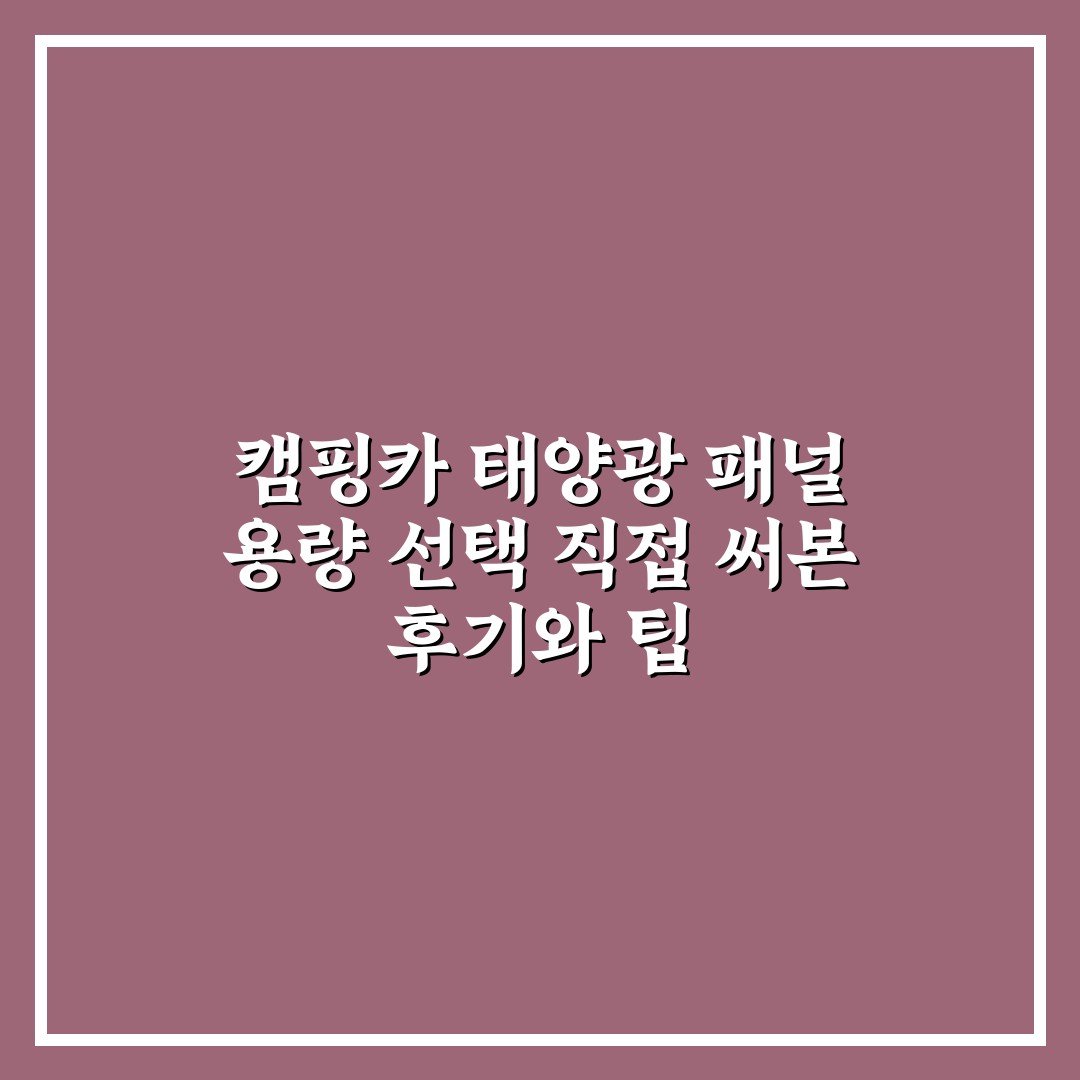 캠핑카 태양광 패널 용량 선택 직접 써본 후기와 팁 2026년 03월 27일 작성자: 인포 캠핑카 태양광 패널 용량 선택 고민이라면, 직접 사용해본 후기를 바탕으로 실용적인 팁을 확인해보세요.